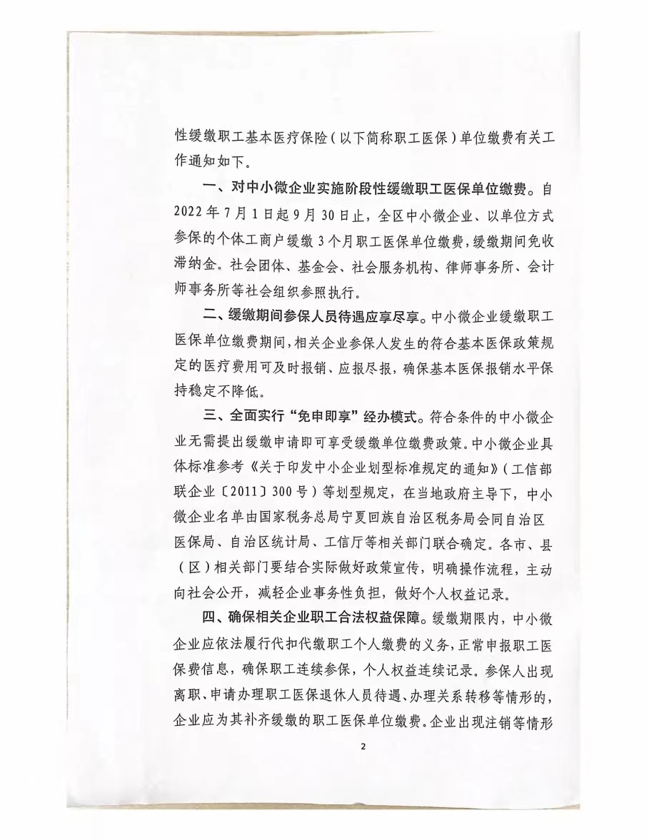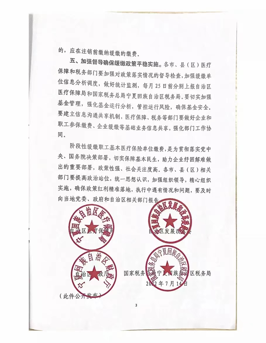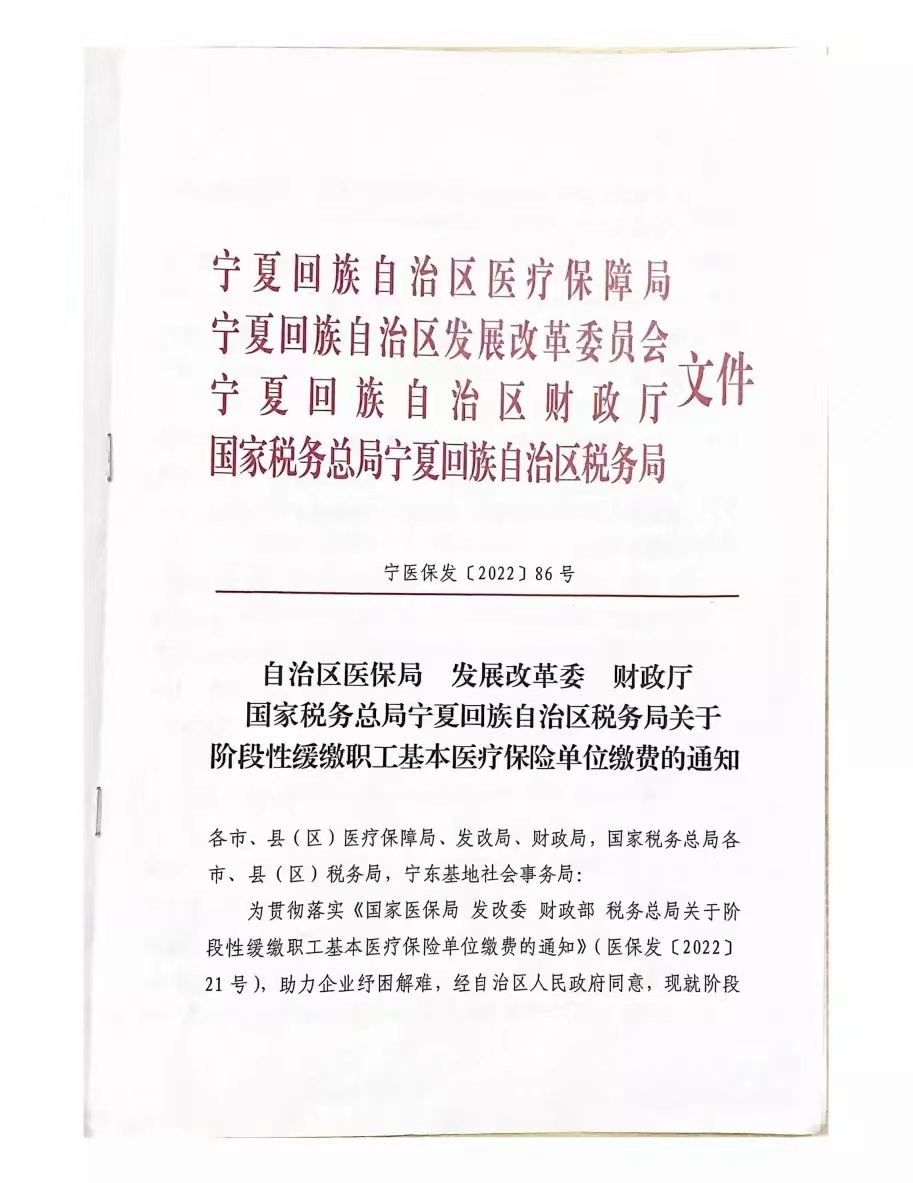 自治区医保局 发展改革委财政厅 国家税务总局宁夏回族自治区税务局关于阶段性缓缴职